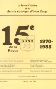 Revue d’histoire de la SHND – Vol XIII, No 1, Janvier-Mai 1985